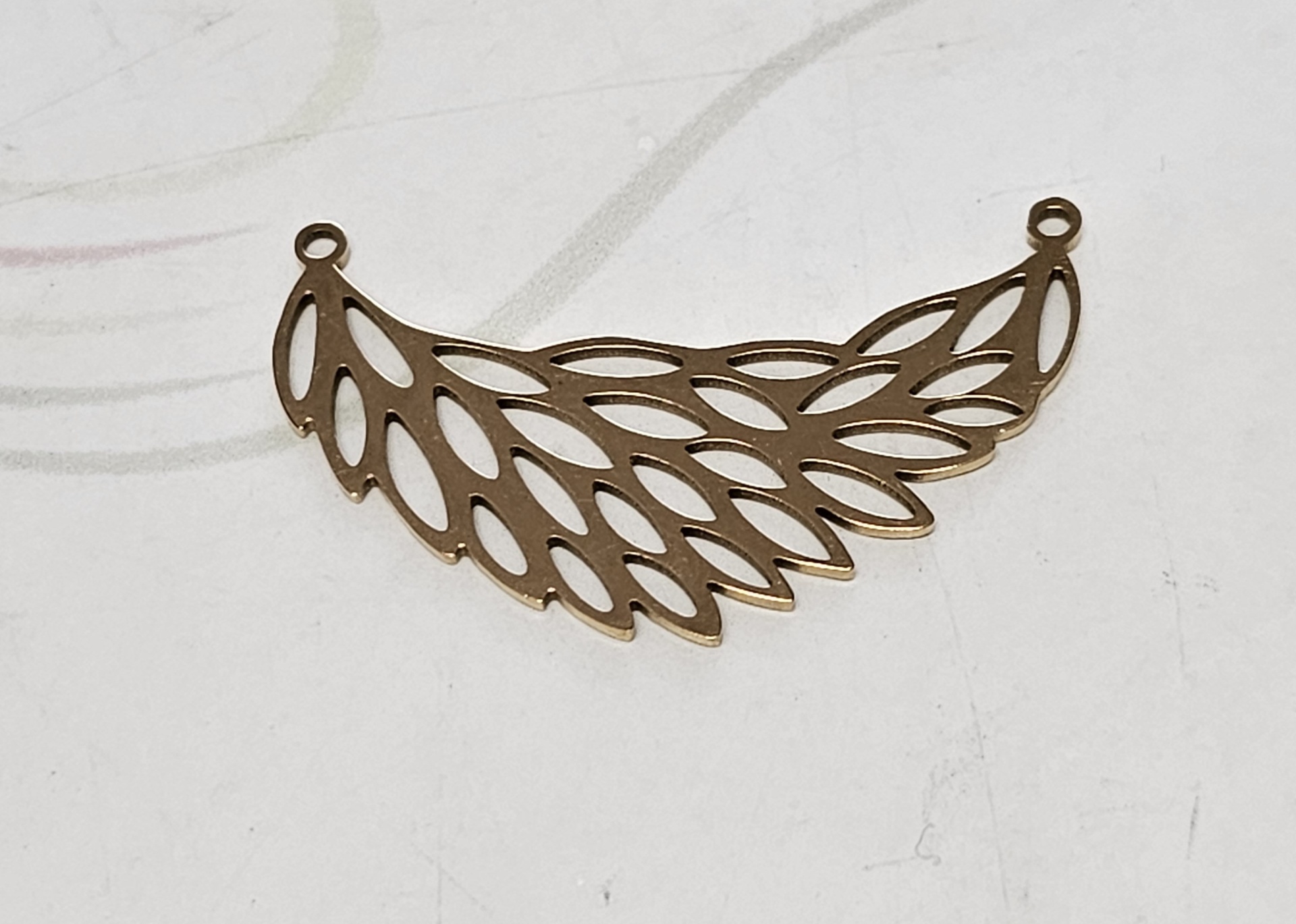 Elemento decorativo metálico dourado com padrão de folhas vazadas