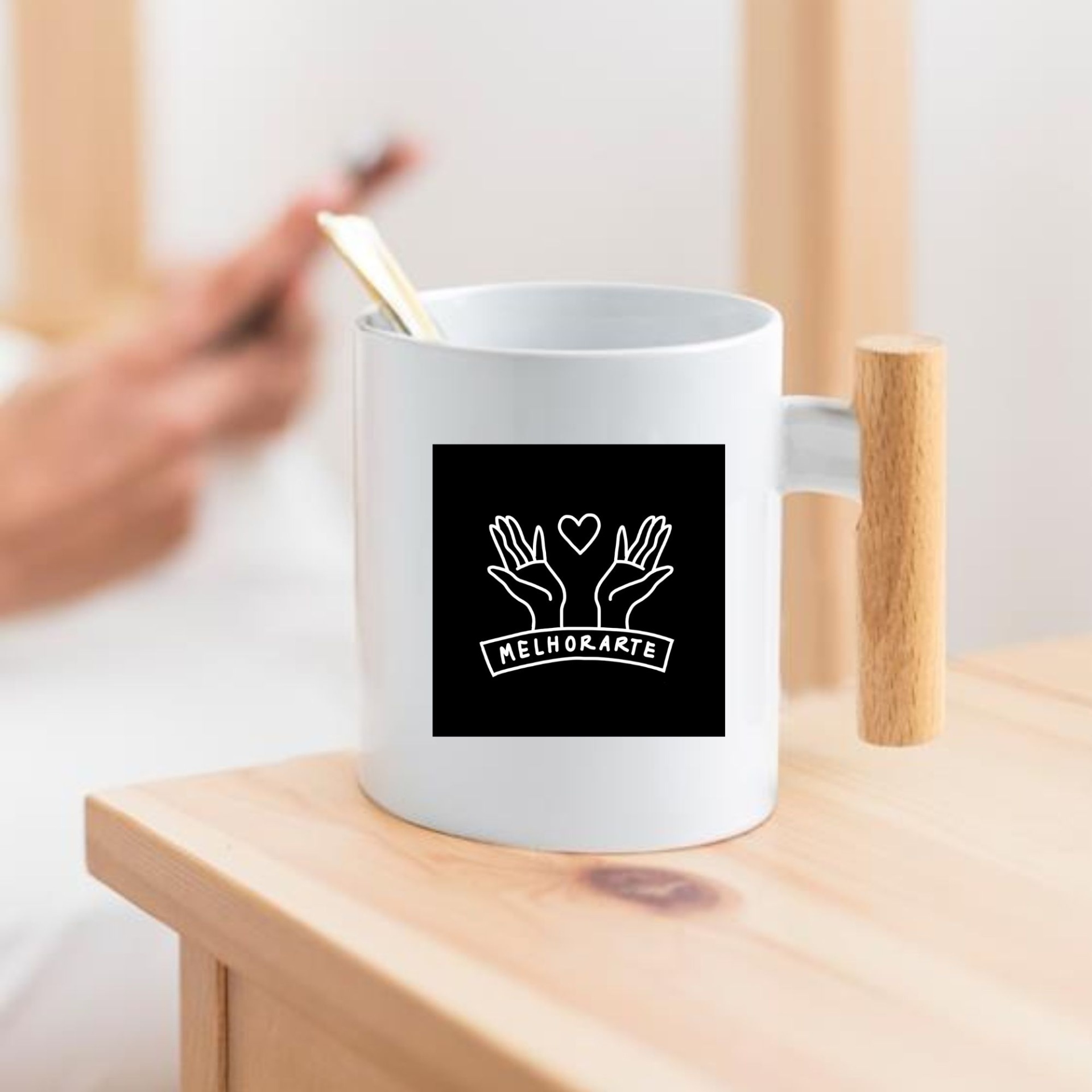 • Caneca de Cerâmica com Asa em Madeira Para Sublimação