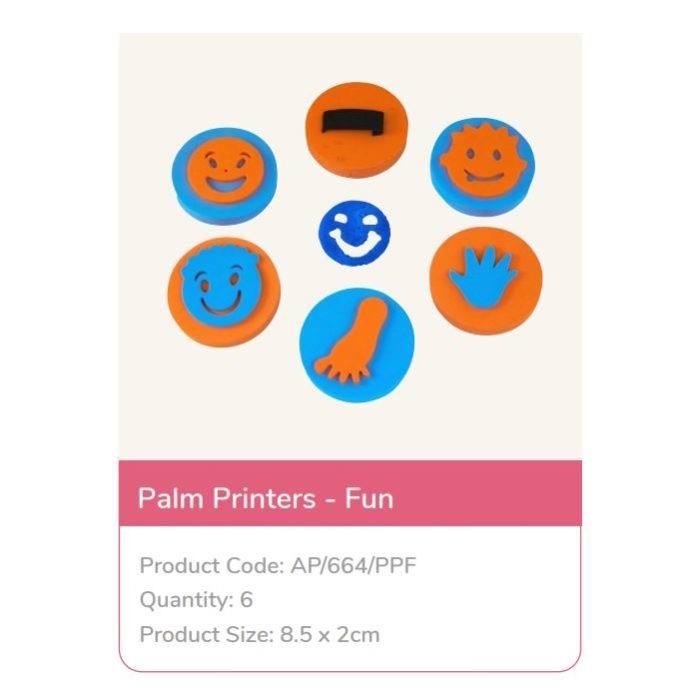 Conjunto de 6 carimbos de palma coloridos com rostos e formas