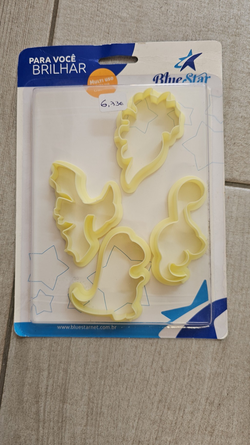 Conjunto de cortadores de bolachas amarelos em embalagem azul e branca Blue Star
