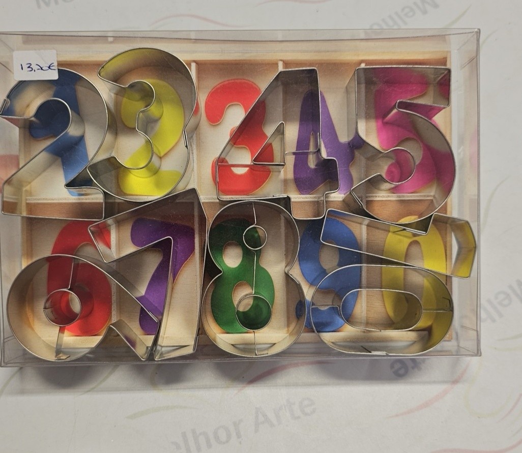 Conjunto de cortadores de biscoito em forma de números coloridos