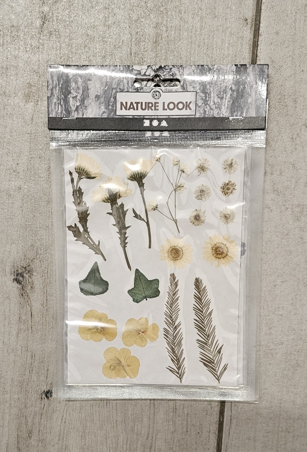 Pacote de autocolantes florais Nature Look em embalagem transparente sobre fundo cinza