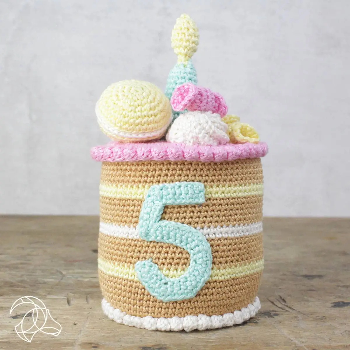 Comemore os seus aniversários e marcos com este kit Bolo com Números em lindos tons pastéis. Substitua o número do bolo e o bolo estará pronto para a próxima festa. Este pacote contém um molde, fio de qualidade 100% algodão e todos os materiais necessários para começar (exceto agulha de crochê). O Bolo com números tem aproximadamente 18 cm de altura, 10 cm de diâmetro e é feito com agulha de crochê de 2,5 mm. O padrão inclui instruções para números de 0 a 9.