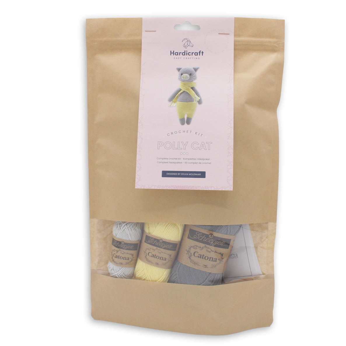 Atenção todos os amantes de gatos, conheçam Polly! Polly também tem um namorado, Pixie. Pixie e Polly são o complemento perfeito para sua coleção de amigurumi. Este pacote contém um molde, fio de qualidade 100% algodão e todos os materiais necessários para começar (exceto agulha de crochê). Polly tem aproximadamente 21 cm de altura e é feita com agulha de crochê de 2,5 mm.