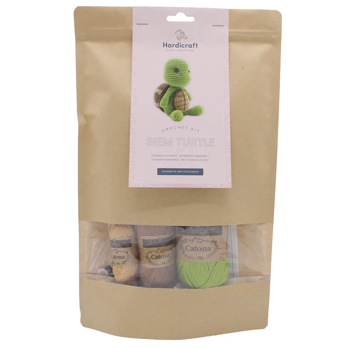 Esta linda tartaruga gosta de ser abraçada. Este kit contém um molde, fio de qualidade 100% algodão e todos os materiais necessários para começar (exceto agulha de crochê). O Siem tem aproximadamente 24 cm de altura e é feito com agulha de crochê de 2,5 mm.