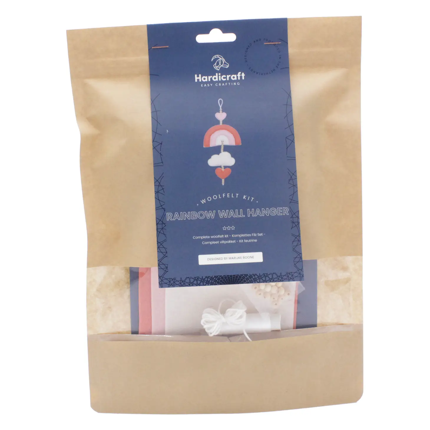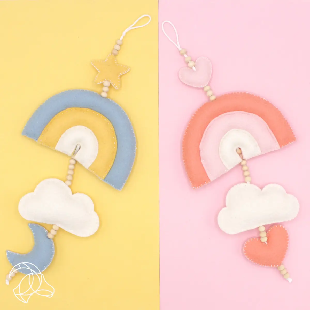 Decore o quarto do seu bebê ou criança com este colorido e alegre penduricalho de parede Rainbow. Ideal também para brinquedo do seu bebé. Este pacote contém um padrão, feltro de lã de alta qualidade, recheio e todos os suprimentos necessários para começar. Graças às instruções claras e multilíngues e aos desenhos de trabalho, qualquer pessoa pode agora fazer esta linda criação de feltro! O cabide de parede tem aproximadamente 24 cm de altura.