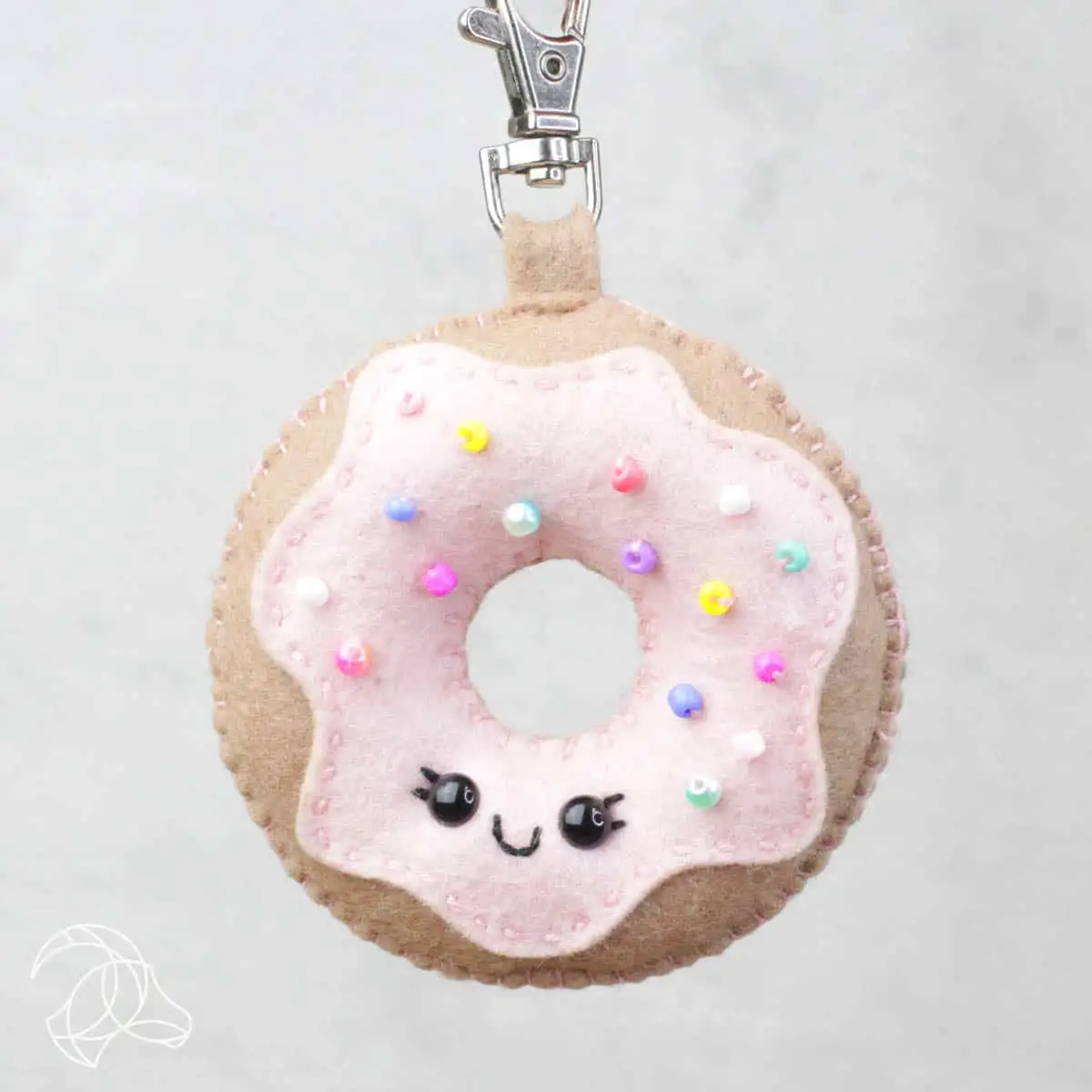 Faça seu próprio porta-chaves Donut com este pacote de feltro de lã. Esta embalagem contém um padrão, feltro de lã de alta qualidade, estofamento e todos os suprimentos necessários para começar a trabalhar. Graças às instruções multilingues claras e aos desenhos de trabalho, todos podem agora fazer esta bela criação sentida! O donut com diâmetro aproximado de 8 cm.