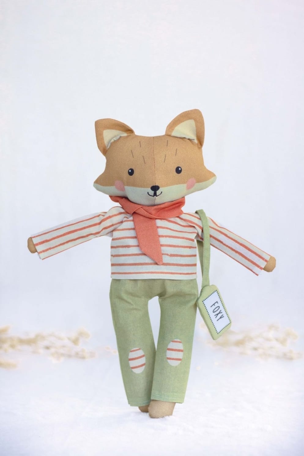 Corte todas as partes do painel, cosa-as fazendo um peluche que pode personalizar a etiqueta com o nome.