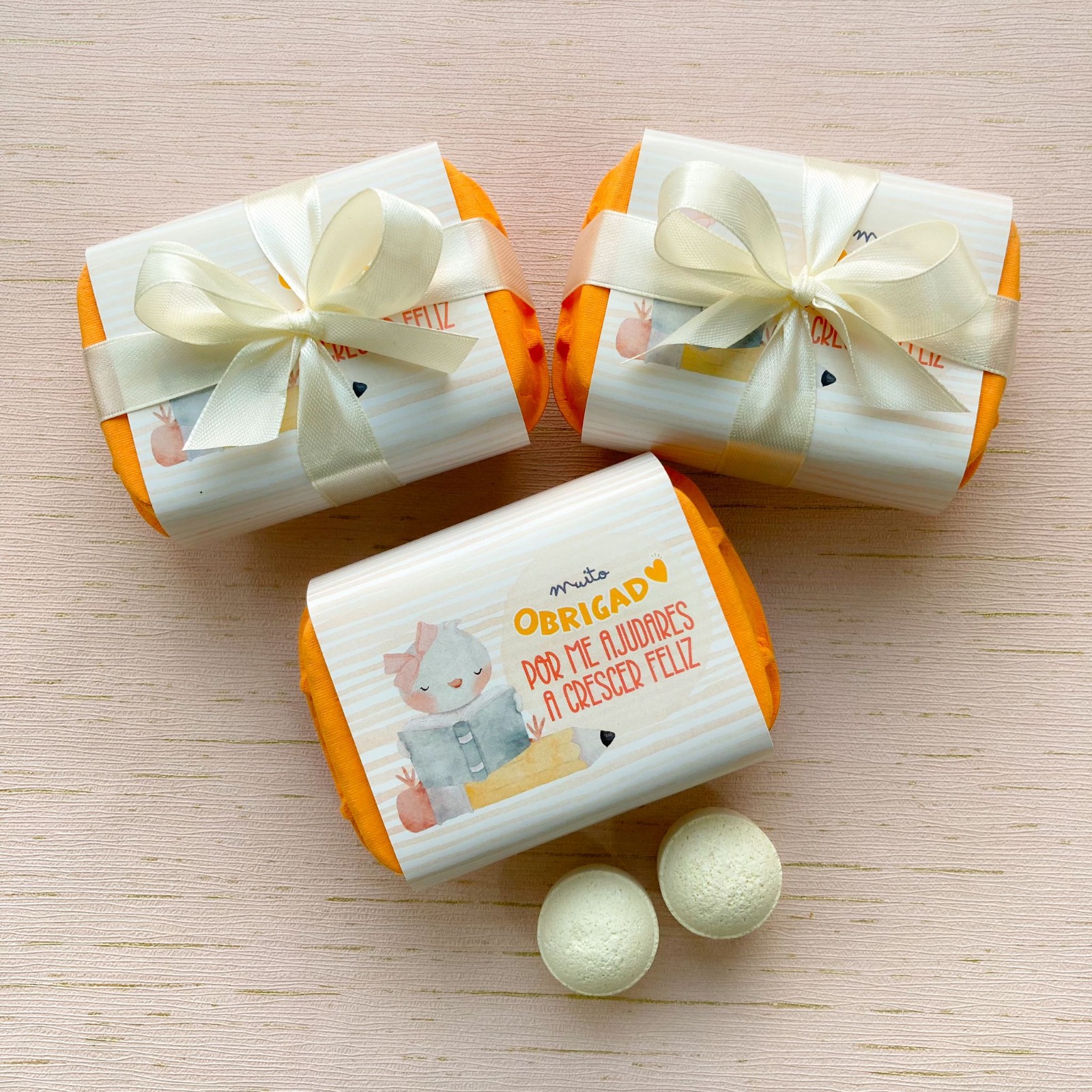 "Obrigada - Por me Ajudares a Crescer Feliz" - Caixa com 6 Mini Bombinhas Banho