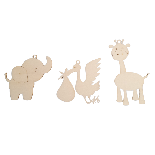 Pack 3 Aplicações Nascimento composto por Cegonha, Elefante e Girafa