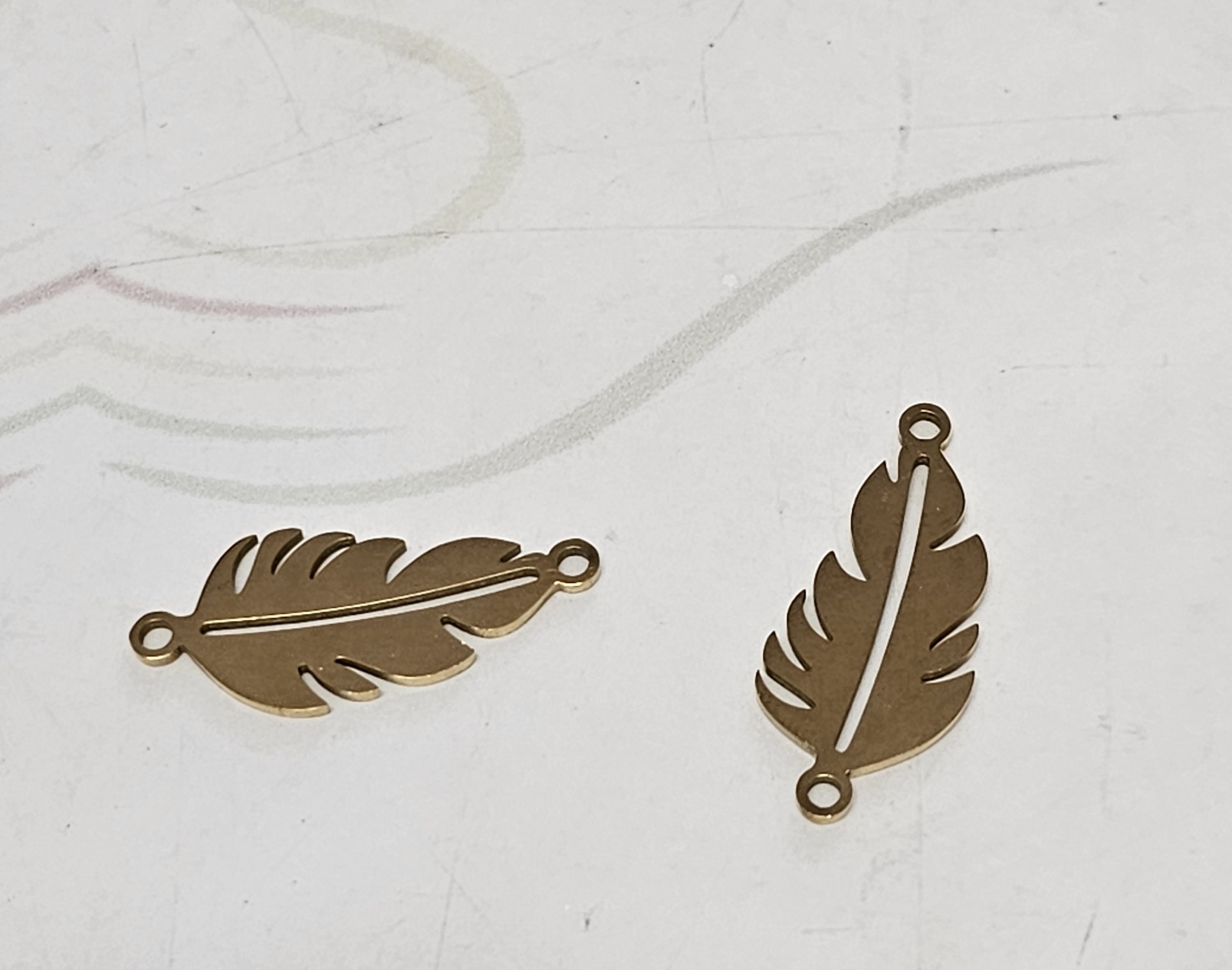 Dois pendentes castanhos em forma de pena sobre superfície clara