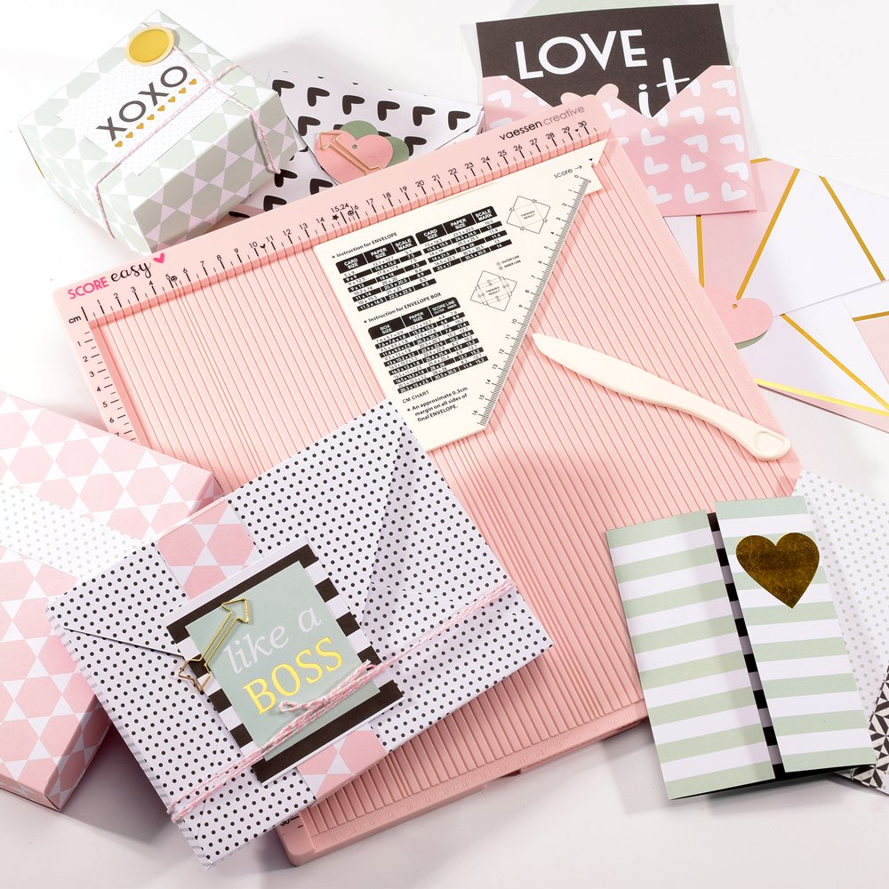 Kit de base de corte cor-de-rosa, papéis decorativos e ferramenta de vinco
