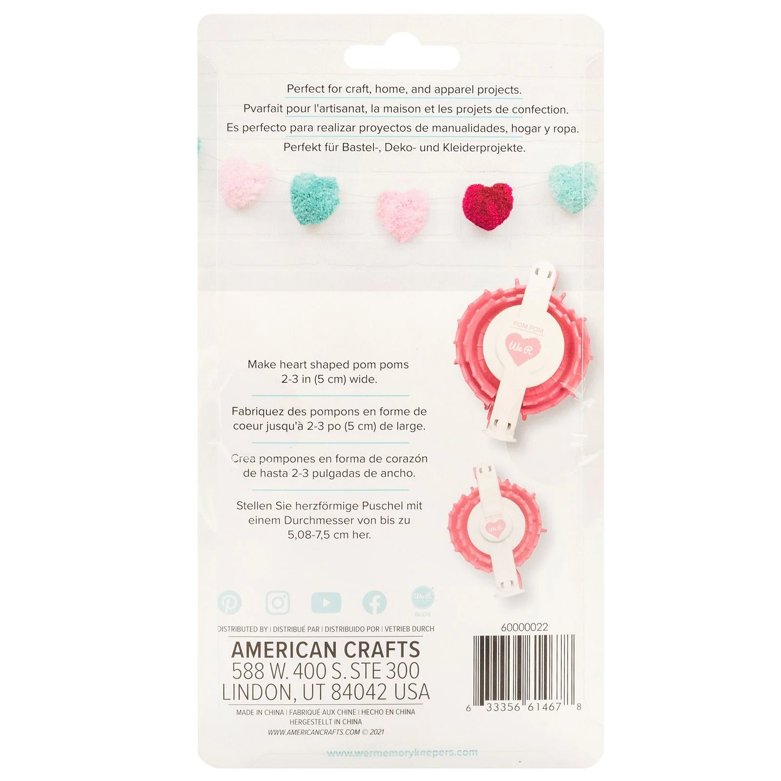 Kit para fazer pompons em forma de coração com componentes em plástico em embalagem azul