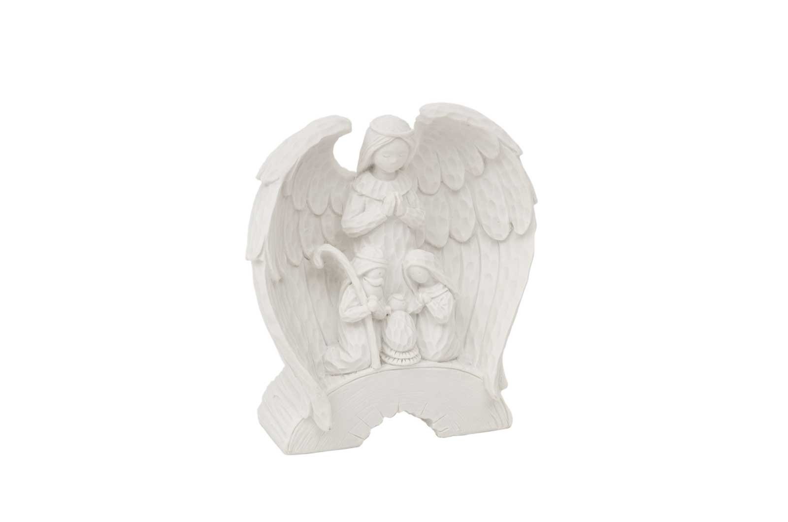Escultura decorativa branca de anjo com crianças