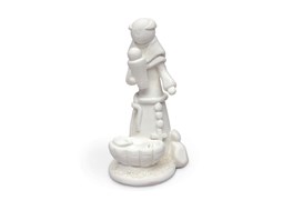 Figura decorativa branca representando uma pessoa com criança