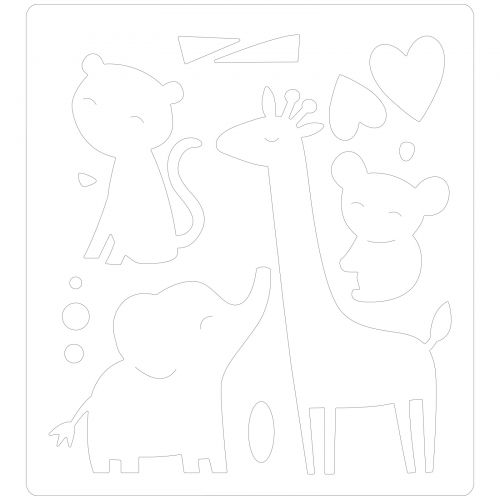Stencil plástico branco com desenhos de animais e formas recortadas