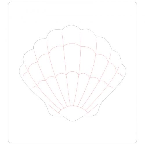 Embalagem branca em forma de concha com linhas finas vermelhas