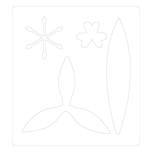 Molde branco com recortes de formas diversas sobre fundo branco