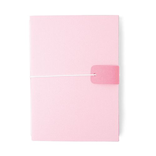 Caderno rosa claro com fecho de aba e elástico branco