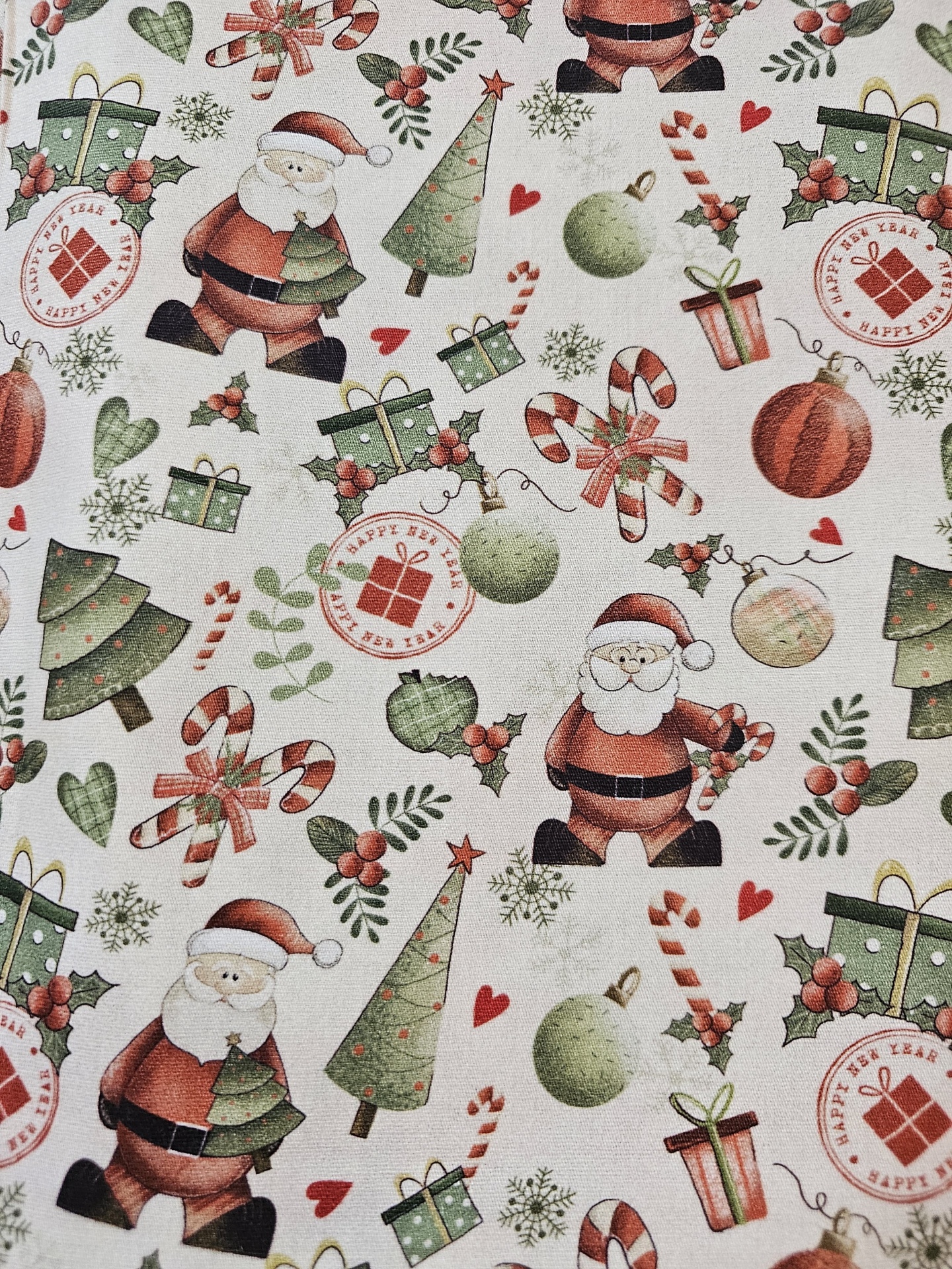 Tecido branco com padrão natalício colorido